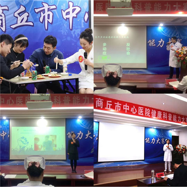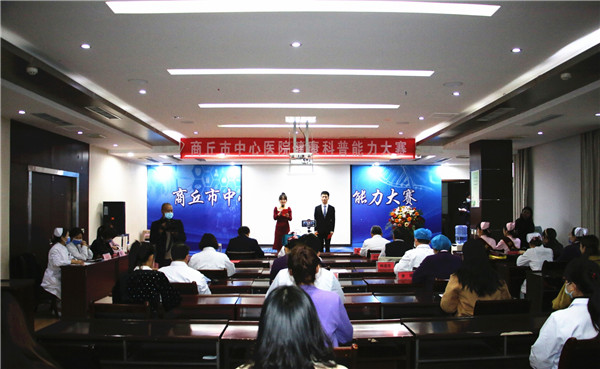 2020年11月18日下午在门诊五楼会议室举办健康科普能力大赛。商丘市中心医院院长蒋家东,副院长纪河岭、孟祥以及组委会成员黄灏、王丽、张瑞亮、杨献良、谢中兰、杨道荣、王琳、王娇英、李萍担任大赛评委。护理部贾张业、急诊科张威岩担任大赛主持人,特邀医院监察科陈爱贞、张文凤,计分员王艳红、李红对比赛过程进行监督及统计分数。本次大赛我院医、药、护、技单元的23名选手积极报名参加并取得优异成绩。首先,院长蒋家东为大赛致辞,并向大会的召开表示祝贺,他表示,医务工作者是健康科普主力军,有效发挥健康科普传播的主渠道作用,通过科普宣传,能够在指导人民养成良好健康的生活方式中发出最有力的、最科学的声音。