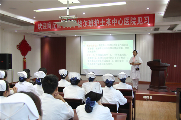 为使在校护生所学理论与实践不断结合,弘扬传承奉献精神,激励高校护生志愿服务的热情,同时提升我院护理人员临床带教能力,2019年5月23日下午14:30,对商丘市医学高等专科学校南丁格尔班的44名护生进行了理论、技能培训及见习安排。