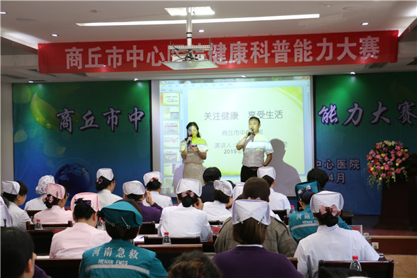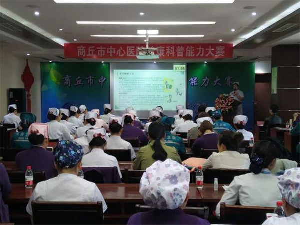 2019年4月16日,在“5.12”国际护士节前,商丘市中心医院举办健康科普能力大赛。来自全院各护理单元的23名选手积极报名参加,业务院长纪河岭、护理部主任马瑞华及全体护士长担任评委,妇产科的韩淑灿、手术室的姬振男担任大赛主持人,特邀医院监察科主任陈爱贞对比赛过程进行公正监督。全院各科室护理人员及实习进修人员约120名参加。