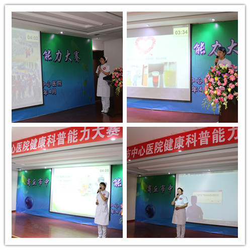 23名参赛选手结合PPT展示,依次进行了5分钟的科普演讲,有几名选手还采用了声情并茂的情景剧表演,内容绘声绘色、生动活泼,将枯燥的医学知识用直观、易懂的方式展现出来。台下观众听得是聚精会神,赛场上不时爆发出阵阵热烈的掌声。评委们从演讲内容、演讲技巧、演讲效果、熟练程度、时间控制五个方面进行评分。