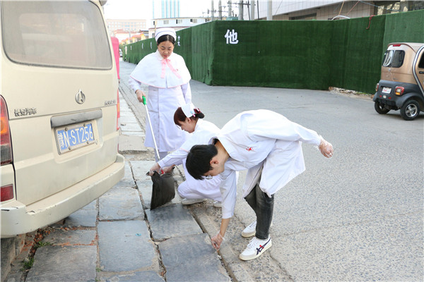志愿者们分成3个小组进行,活动中,大家身披志愿者披肩,手拿扫帚、垃圾斗、清洁铲刀等工具清除路口、道路绿化带、烟头及周边的垃圾杂物。同时,大家还向群众积极宣传卫生意识、控烟知识,引导大家改陋习、树新风,控制吸烟、乱扔烟头等损害城市环境的不文明行为。大家同负责道路清洁的环卫工人一起干得热火朝天,环卫阿姨说:“很感谢你们的帮助,减轻了我们的工作量!”
